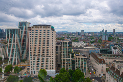 London modern city skyline aerial view including Shell Centre building and Waterloo Station by River Thames at South Bank in London, England, UK.
