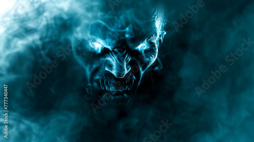 A blue monster with glowing eyes and a mouth full of teeth