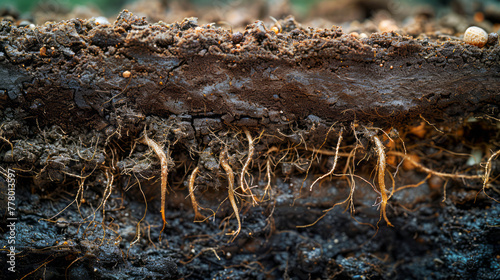 Macro Shot of Plant Roots in Soil Highlighting Nature's Intricate Details and Life's Beginnings