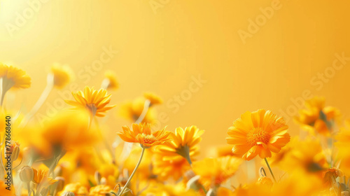 Cheerful calendula flowers in full bloom against a bright, sunny background, perfect for joyful and refreshing designs