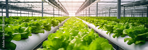Fresh lettuce harvest in the garden on racks with artificial light on hydroponics - healthy vegetable eco-friendly greens growing production for sale in the store.