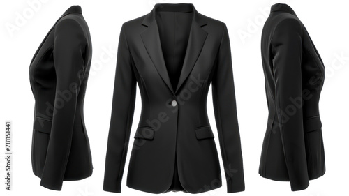 Black blazer for woman, front and side view, mockup, transparent or isolated on white background