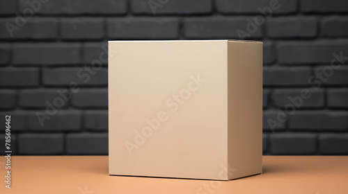 Boîte en carton posé sur un fond neutre. Mock-up pour marque, entreprise. Objet, colis, emballage. Commerce, entrepôt. Pour conception et création graphique.