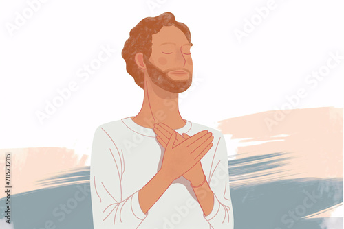 Man with closed eyes and hands on his chest, with emotion of peace and calmness