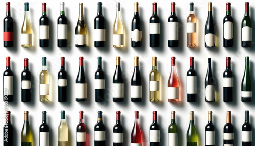 Assorted wine bottles arrayed against a light backdrop, showcasing a diverse wine selection.