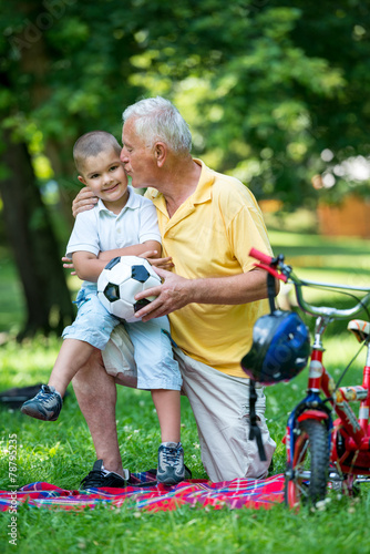 grandfather and child have fun in park