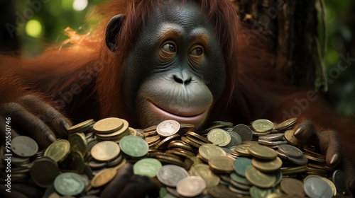 A mischievous orangutan, with a knack for cracking coconuts, accidentally stumbled upon a hidden stash of bitcoins buried by a forgetful human investor