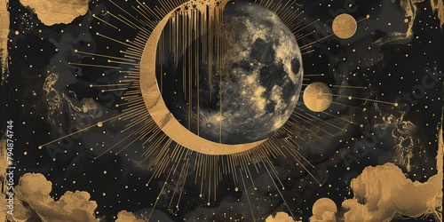 Tarot card style with moon and stars , starry night sky, whimsical beautiful moon and stars illustrations background wallpaper. moon and stars illustration for prints wall arts and canvas.