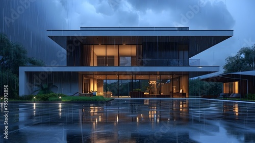 Urban Sanctuary: A Modern Home Confronts a Fierce Storm's Downpour