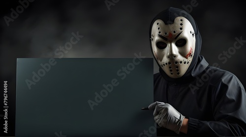 a man wearing a dark scary Halloween mask, celebrating Halloween with flame or fire lighting his face.generative.ai
