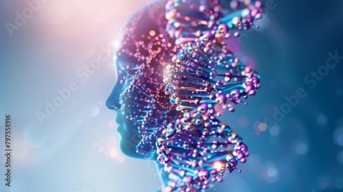 A digital render of a DNA strand superimposed over a human silhouette, symbolizing genetic research