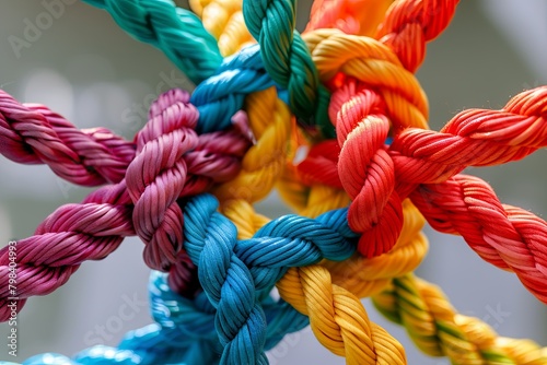 Rope Strengthens Team Bonds: Diverse Partnership in Colorful Collaboration Circle