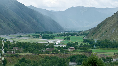 a tibetan village in the mountains in western sichuan, china