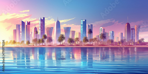 Doha, Qatar with its typical sights on a sunny day. Skyscrapers buildings of Doha Qatar.