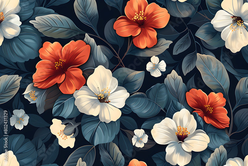 Pleasant and unpretentious floral pattern featuring whimsical flowers and leaves, rendered in a minimalist style with subtle colors, evoking a sense of natural beauty and tranquility.