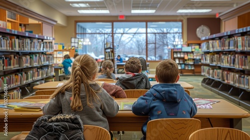 Image shows children sitting in a library and reading books.