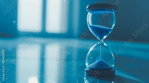 Elegant hourglass in a serene studio setting, symbolizing the passage of time for deadlines and appointments, isolated for emphasis