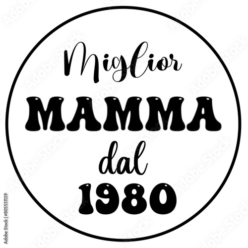 Miglior Mamma dal 1980 - written in Italian - circular frame - icon - word ideal for website, presentation, postcard, t-shirt, greeting card, sticker, cricut, sublimation, scrapbooking