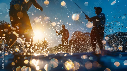 A group of friends competing in a friendly game of subatomic particle fishing.