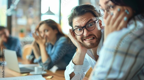 Employees expressing frustration as they sit through another lengthy and unproductive meeting