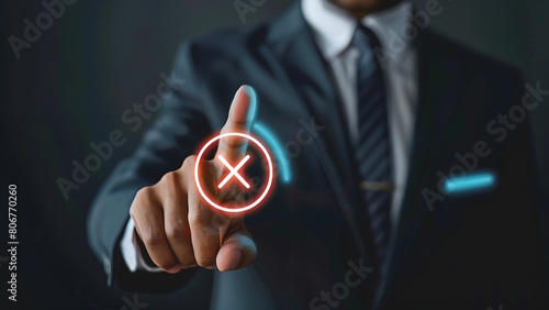 Businessman touching holographic cancel icon.