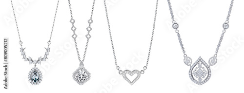 Set of premium luxury diamond pendant necklaces isolated on transparent background. Generative AI