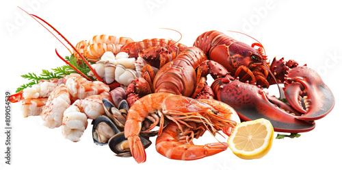 Assorted fresh seafood and fish platter with citrus garnish isolated on transparent background png