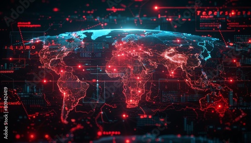 Cybersecurity threat map, ideal for network protection services and security monitoring