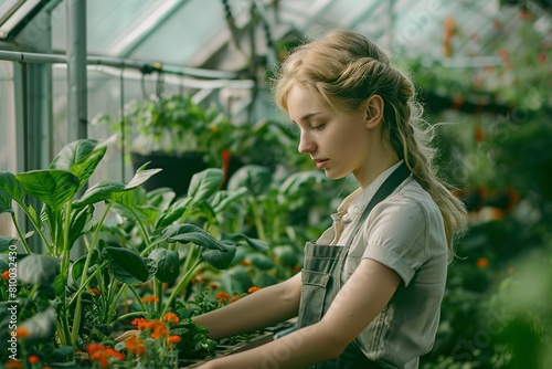 Woman Standing in Greenhouse