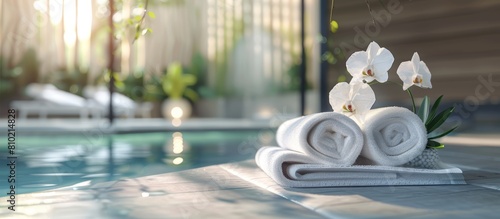 towels with orchid flowers in the spa