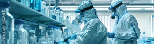 High-detail vector of a toxicology lab scene, illustrating scientists in protective gear examining biohazard materials, safety first theme