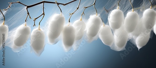 White silkworm cocoons are used to produce silk thread and silk fabric as shown in the copy space image