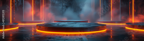 Futuristic Platforms with Neon Lighting in Misty Ambiance