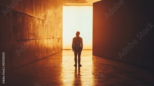 The silhouette of an individual facing a brightly lit threshold symbolizes decisionmaking at the cusp of the future