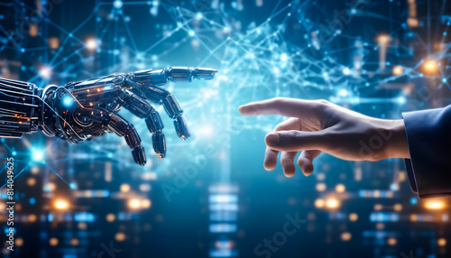 Embracing Tomorrow Human and AI Hands Touching Technology Together