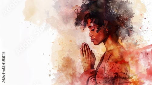 beautiful african american woman praying hands clasped spiritual moment watercolor banner illustration