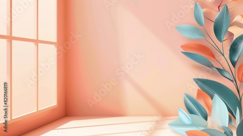 A warm, sunny room with a window casting light and shadows on vibrant, multicolored paper leaves with a soft backdrop