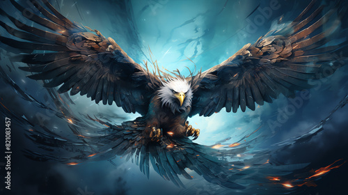 An epic illustration of an eagle with blue and black feathers