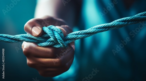 Unity in teamwork diverse strength symbolized by colorful rope braid on cooperative background