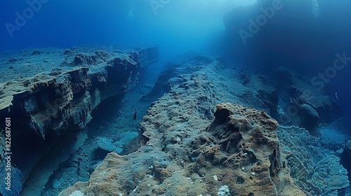 An underwater view of the MidAtlantic Ridge, where tectonic plates are spreading apart,
