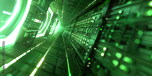 Emerald Data Smuggling Hub: Displaying a hidden location where data smugglers operate, transferring sensitive information through encrypted channels and covert methods