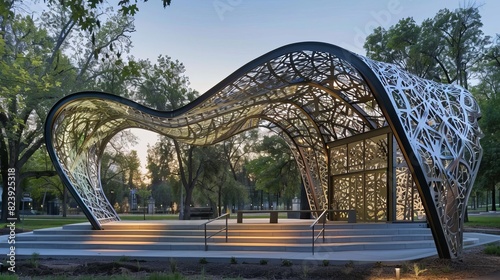 A public park pavilion made from recycled plastic and steel, providing a unique and ecofriendly gathering space