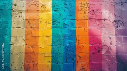 Rainbow Painted On A Brick Wall With Cracked Peeling Paint.