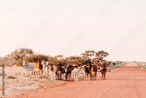 A Herd of Cattle Grazing on Dry Grass Field Kimberley Western Australia Australian Outback Desert Station Cows Bulls Calves