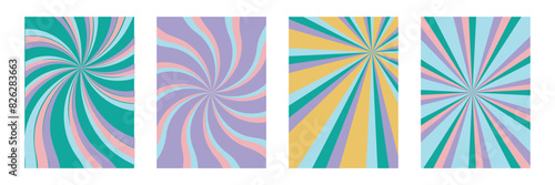 groovy retro abstract sun background set.Retro swirl sun groovy banner background. Abstract grunge sunburst ray.7891