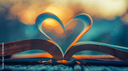 An open book with pages forming the shape of heart, representing love for reading and storytelling.