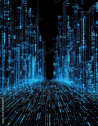 pluie de signes numériques avec une belle lumière, lignes numériques en ia