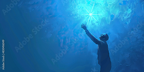 Hope (Light Blue) evokes a powerful emotion and resonates with many individuals. In this photo, a figure is stretching towards a gleaming star, personifying the yearning