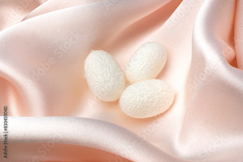 流れのあるシルクサテンと繭玉