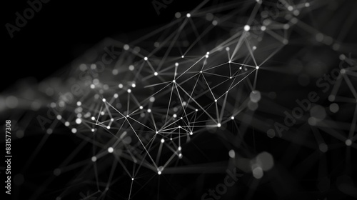 #963868777An abstract, glowing web of interconnected points and lines cascades across a dark backdrop, illustrating concepts of connectivity and network structures.